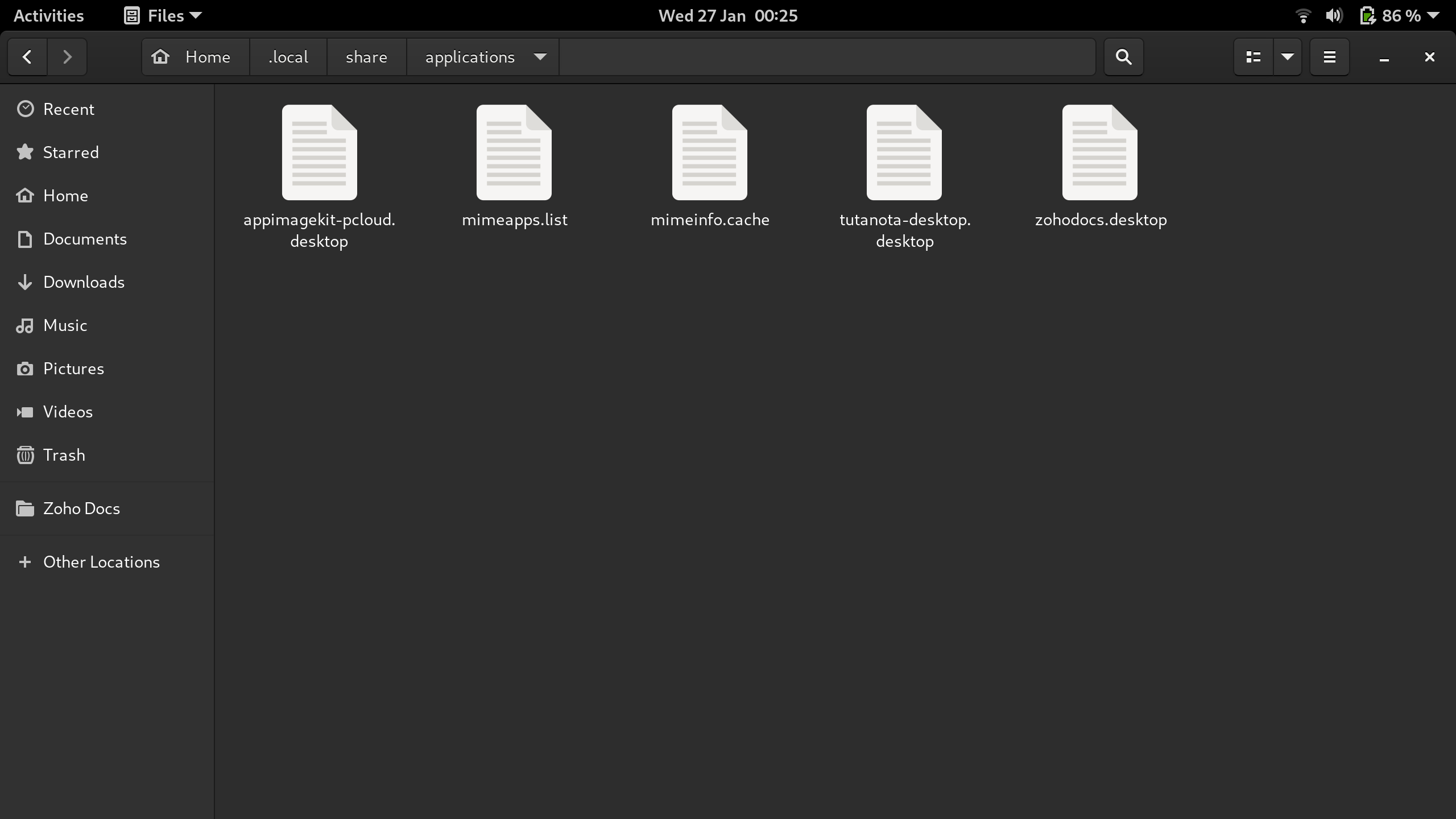 Then I deleted it and run it from terminal, it asked for desktop integration and created desktop file again. But since it is located in user’s home directory, a system upgrade shouldn’t delete them. Are you sure you don’t have them in the ~/.local/share/applications directory?