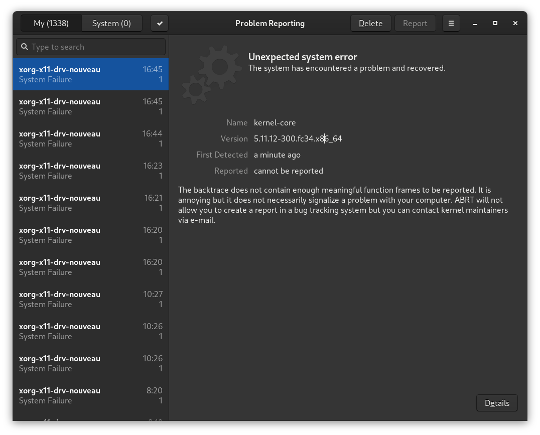 Hi, Its my first post here. I installed fedora 34 workstation edition over a month ago, It worked perfectly out of the box. But whenever I reboot fedora an error pops up and said it could not be reported