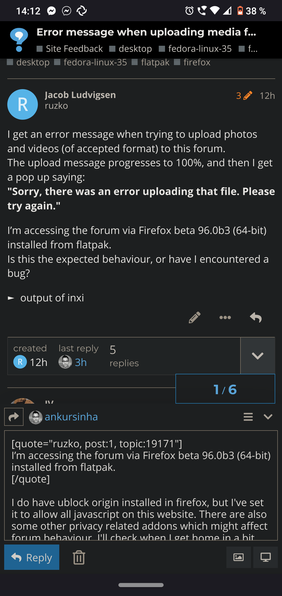 I’m accessing the forum via Firefox beta 96.0b3 (64-bit) installed from flatpak.