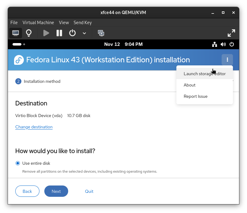 It doesn’t work either. If i only select the disk that have the pop os installed on the “select destination” then the storage editor will show nothing.