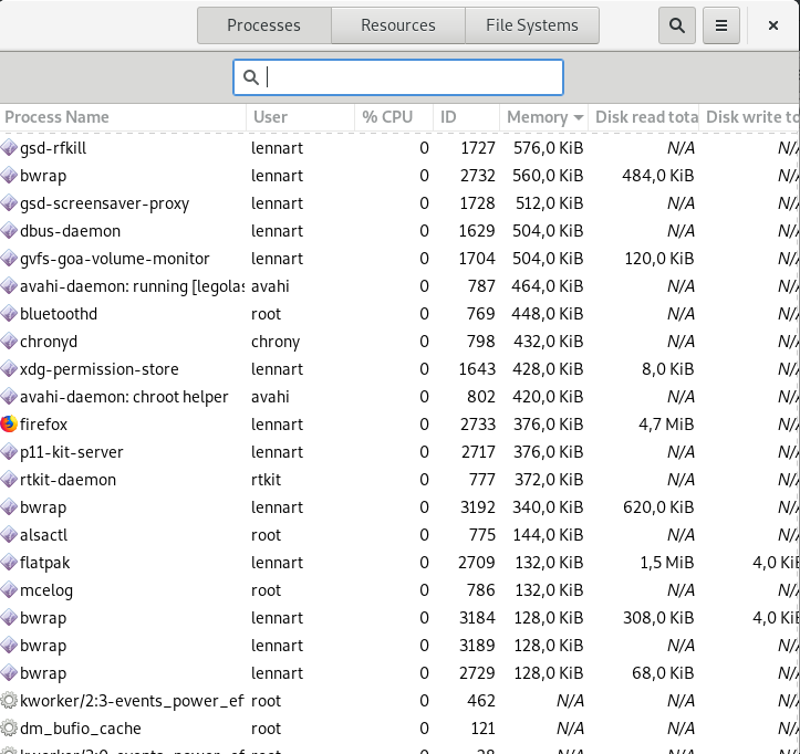 Last night, I left the laptop on with Firefox running. In the morning, I was greeted with a blinking cursor. Memory usage was at 100 % again. I was able to log in in text mode and get the output from mount: