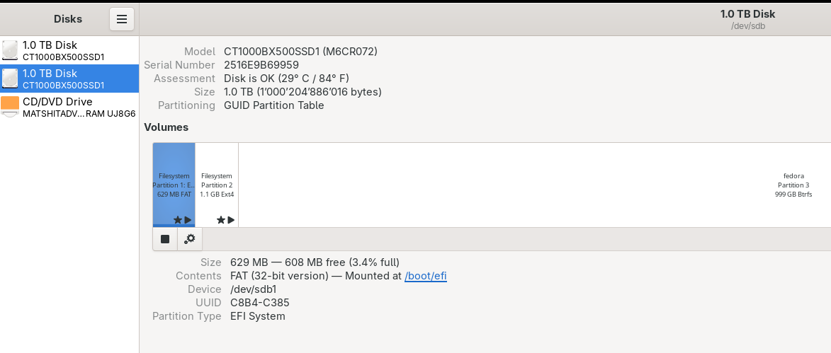 Here is a screen shot from disc’s. This shot is from the Fed43 . the other 1.0 TB is Windows 10. it is a dual boot system, each with its own SSD of 1.0 TB