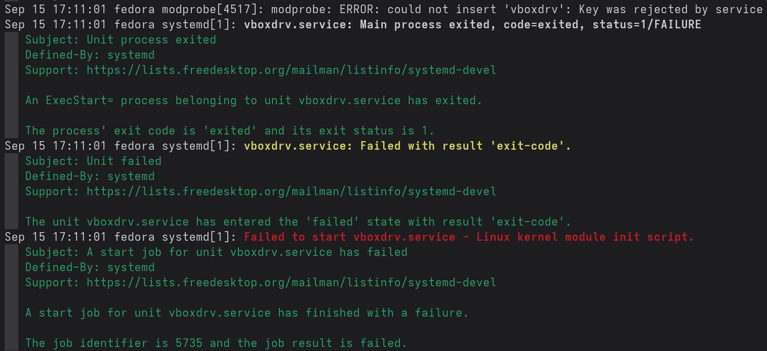 However after completing the enrollment procedure and trying to start the service vboxdrv it gave me this error :